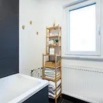 V tomto apartmánu je výhled na zahradu a satelitní TV, místnost na posezení, žehlička a žehlící prkno. V pokojích jsou zahrnuty hypoalergenní polštáře a povlečení, a také vana, fén a ručníky.